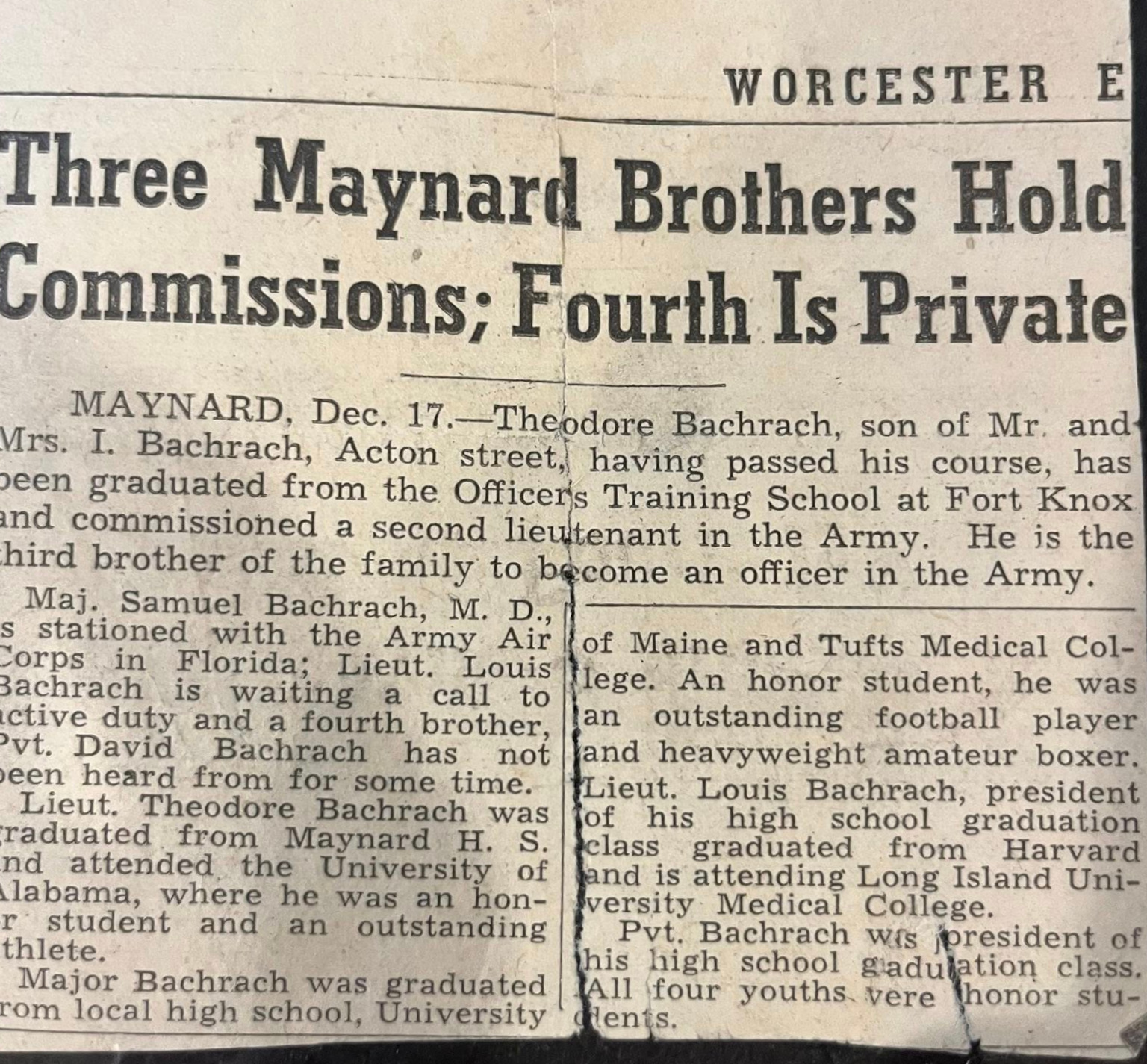 Army News from Maynard MA circa 1941 Susan Bachrach Currier posted the pictures below on Facebook on Veterans Day, November 11, 2025. Theodore Bachrach